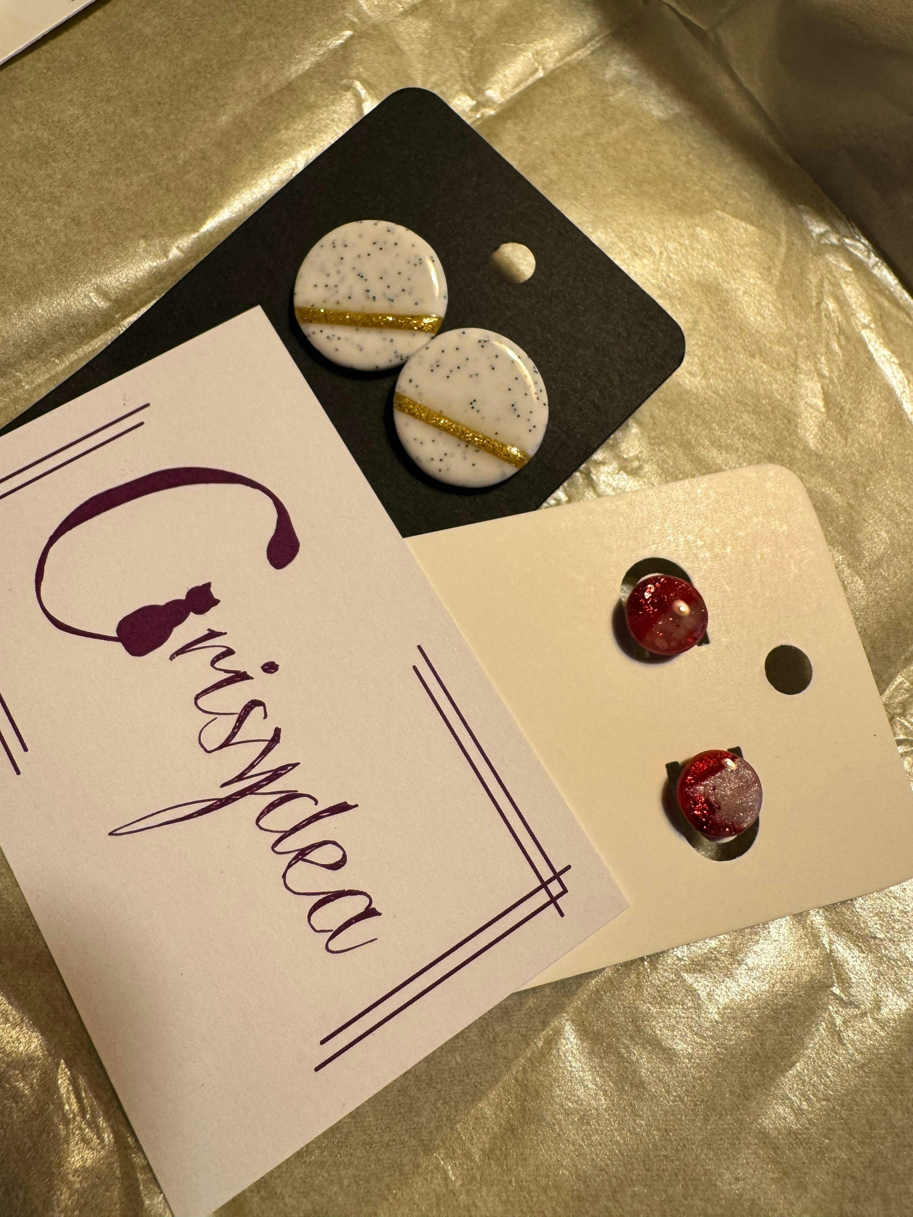 Ohrringe: Beim An- und Abnehmen bitte behutsam mit den Fingern am Metallteil halten, nicht an der Clay-Oberfläche ziehen.