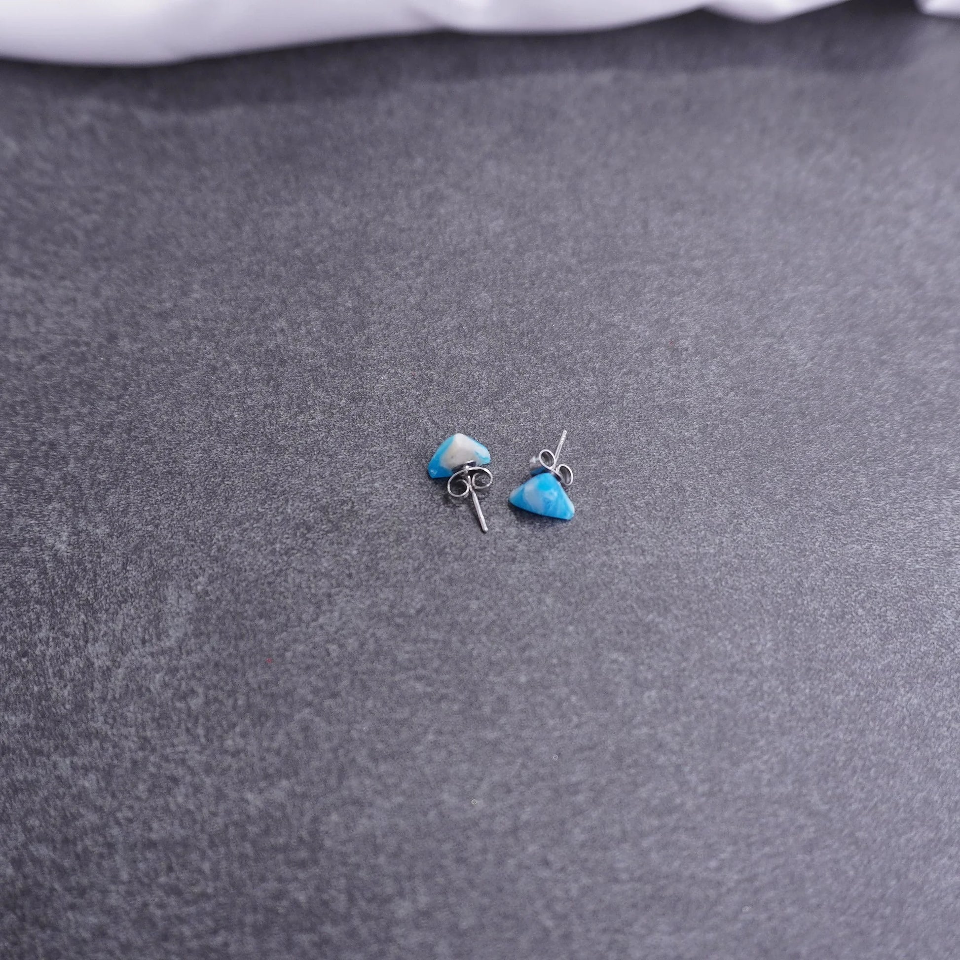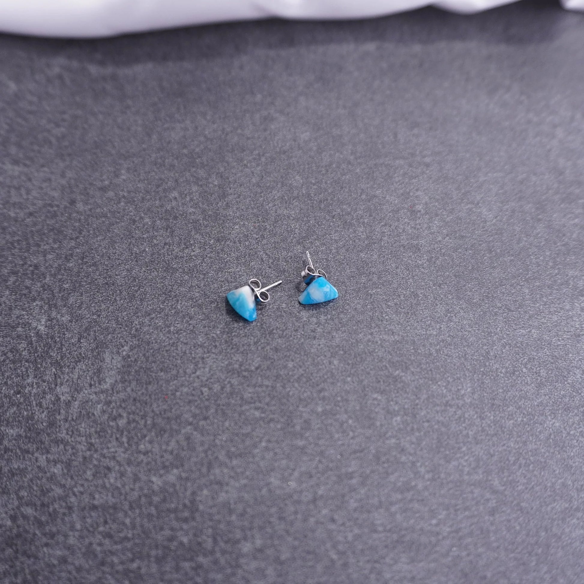 Kleine dreieckige Ohrringe in Blau und Weiß – aus der Kollektion „X-Mas“ – geschaffen, um die grauen Tage etwas bunter zu machen.