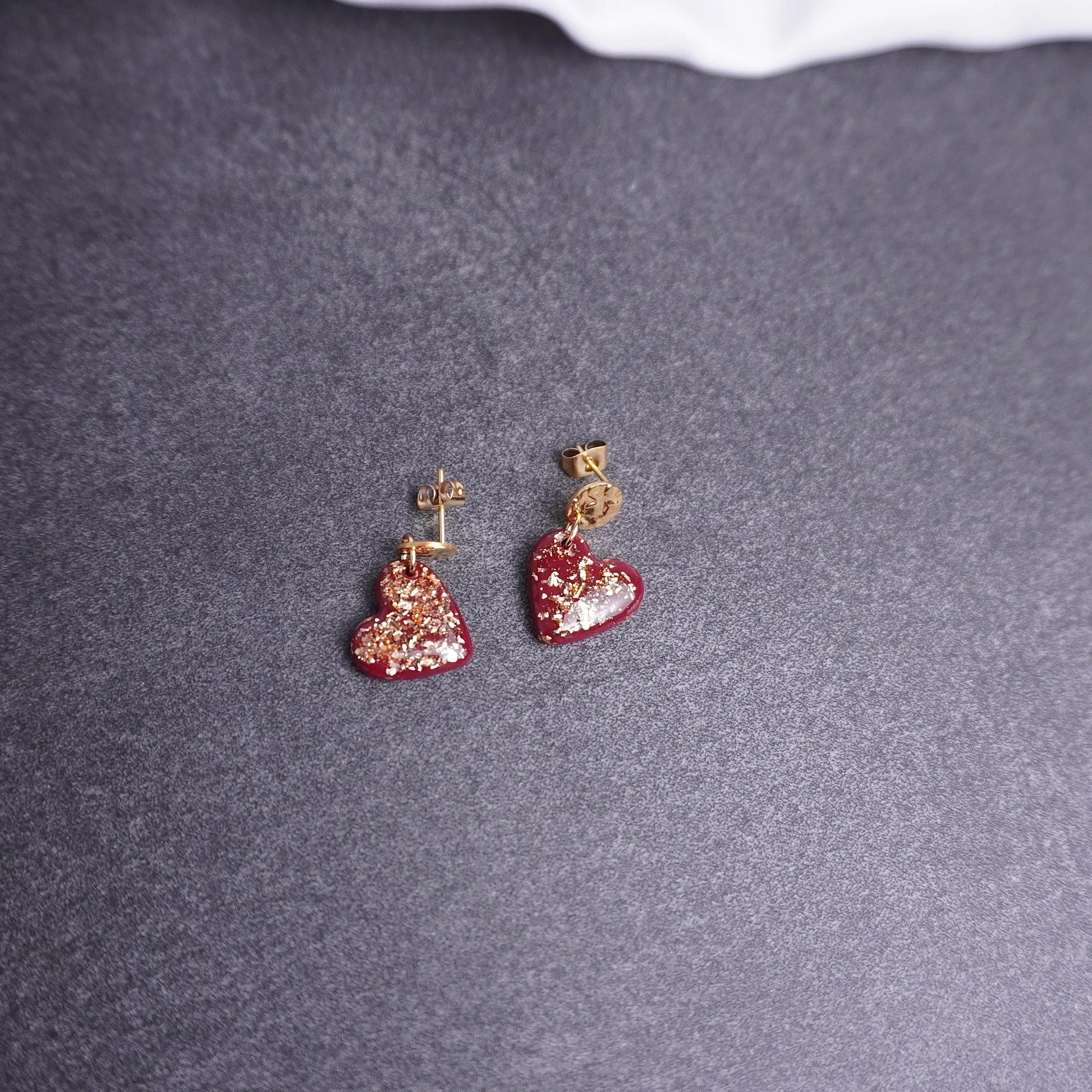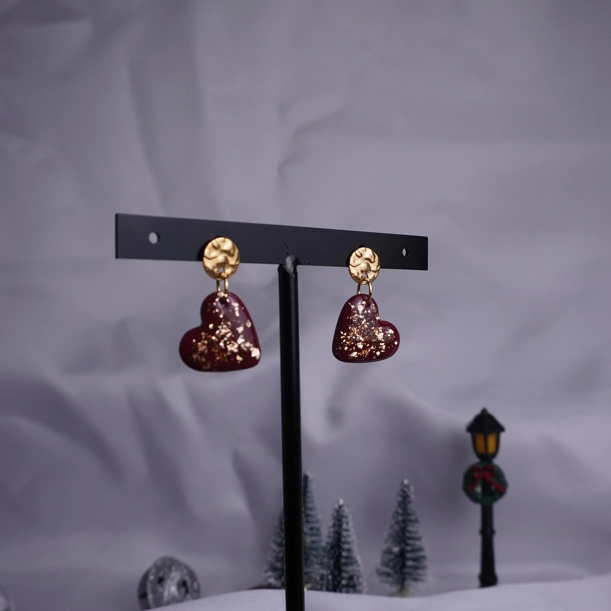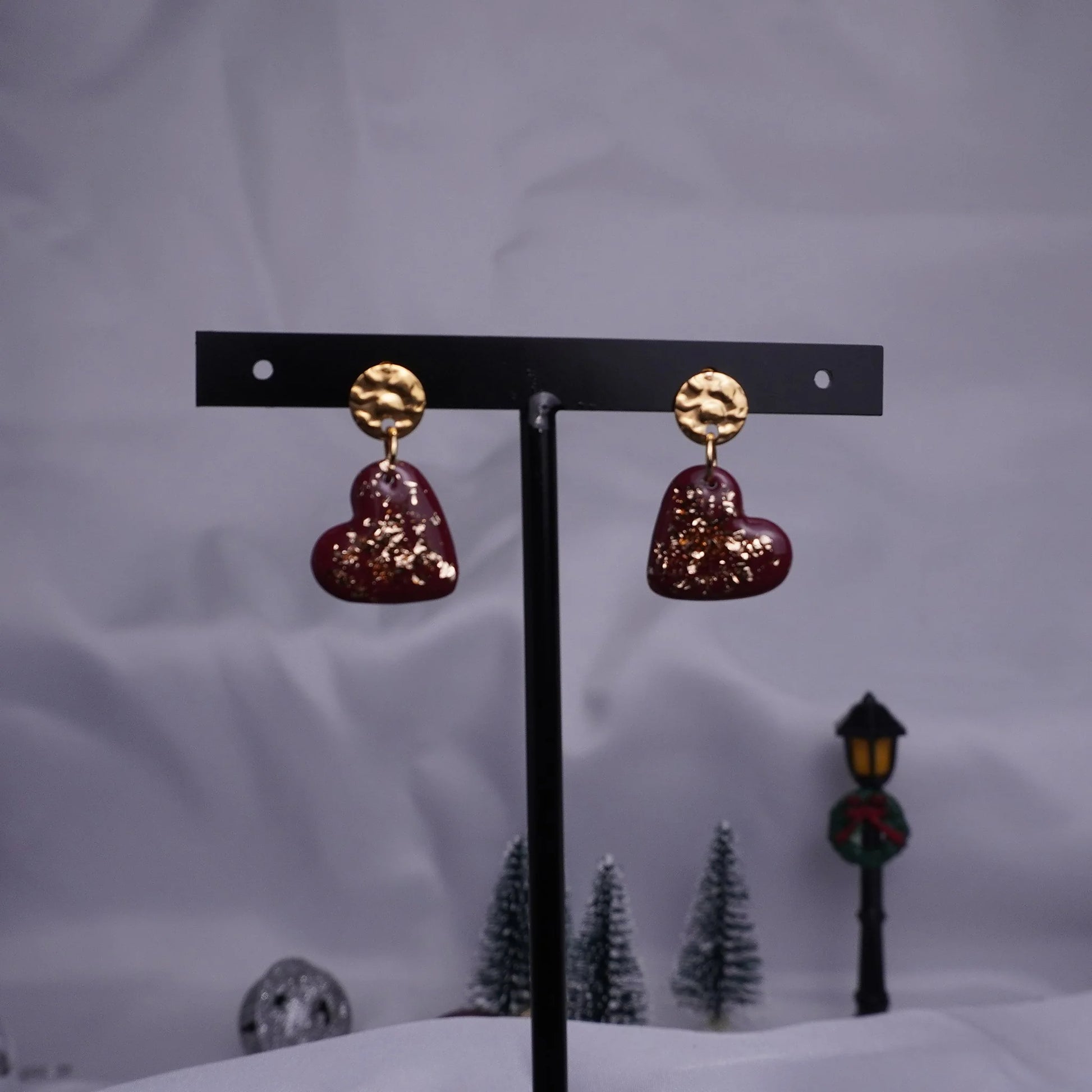 Herz-Ohrringe in Bordeaux und Gold – aus der Kollektion „X-Mas“ – ein fröhliches Highlight, das selbst graue Tage ein bisschen heller macht.
