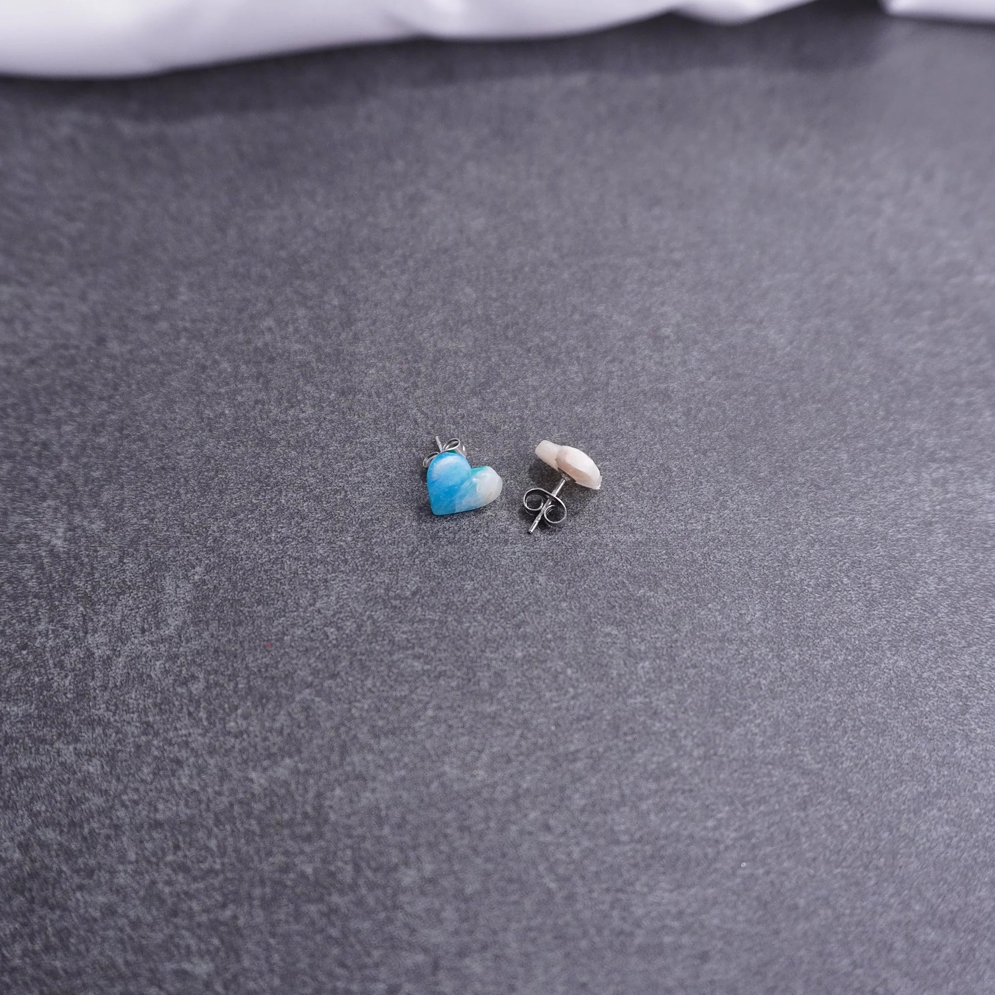 Kleine Herz-Ohrringe in Blau und Weiß – aus der Kollektion „X-Mas“ – geschaffen, um die grauen Tage etwas bunter zu machen.