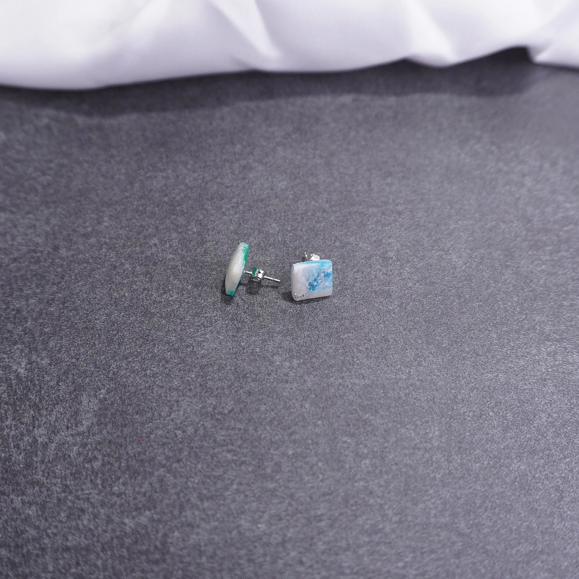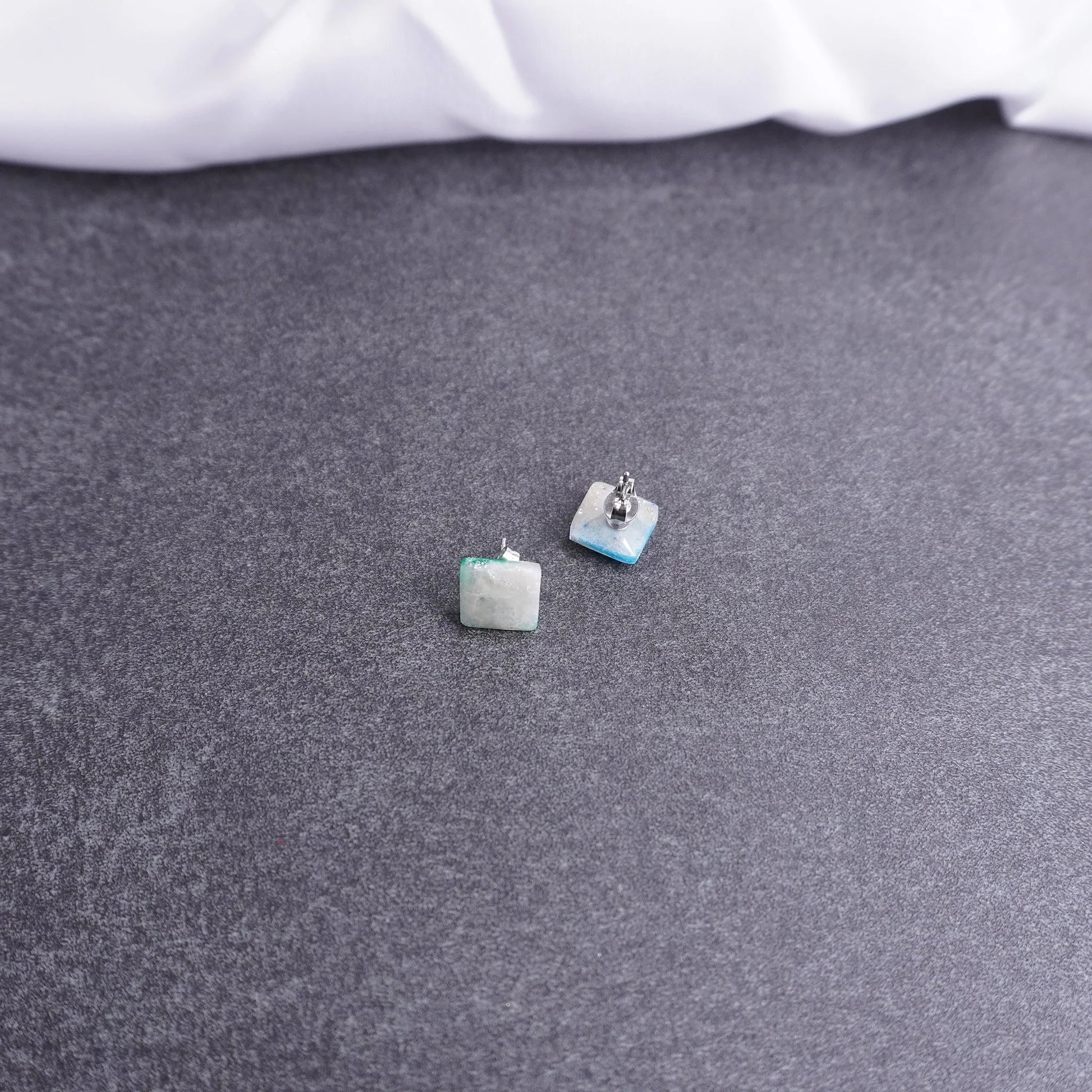 Kleine quadratische Ohrringe in Blau, Weiß, und Grün – aus der Kollektion „X-Mas“ – gemacht für Tage, die Leichtigkeit und ein kleines Lächeln vertragen.