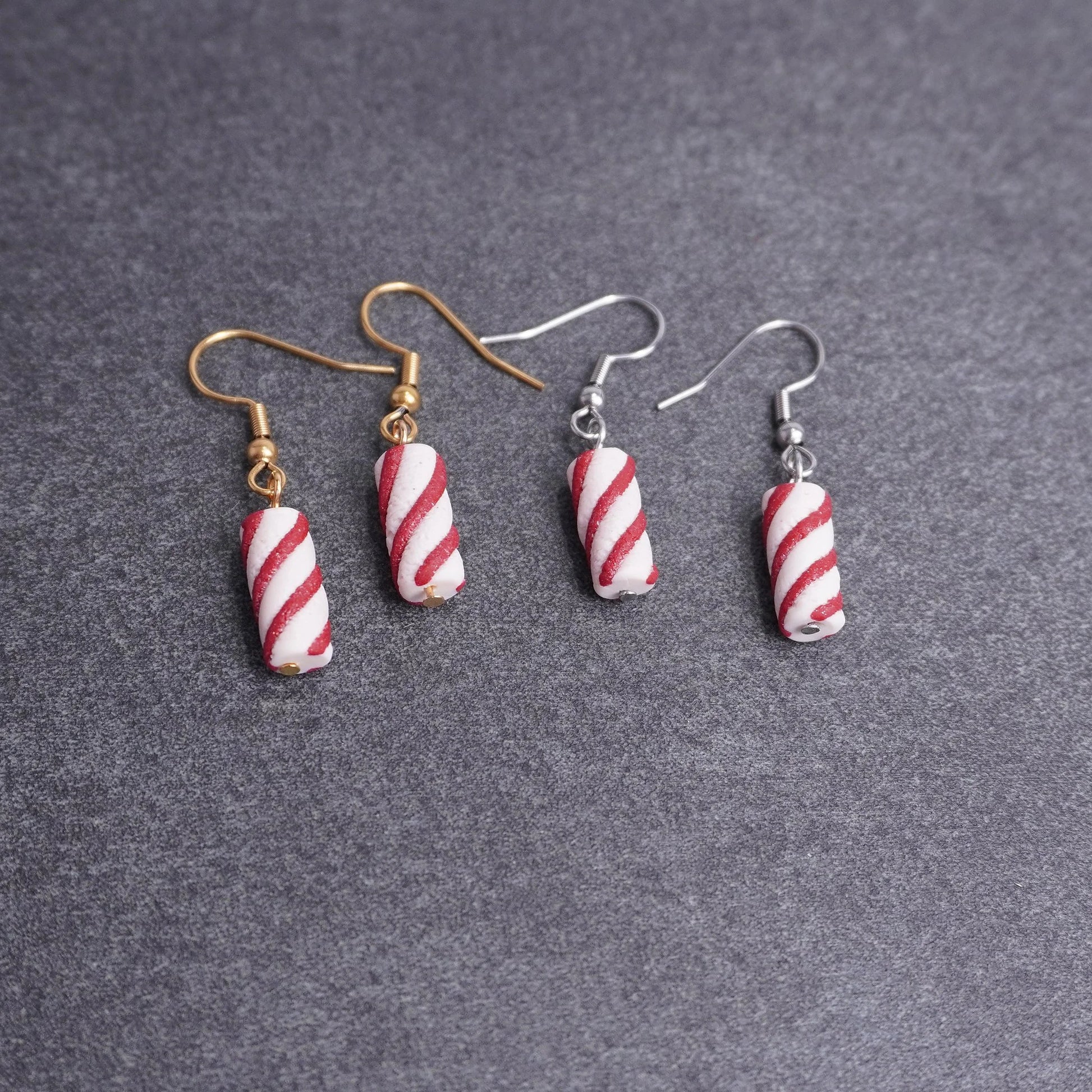 Längliche Ohrringe in Rot und Weiß – aus der Kollektion „X-Mas“ – geschaffen, um die grauen Tage etwas bunter zu machen.
